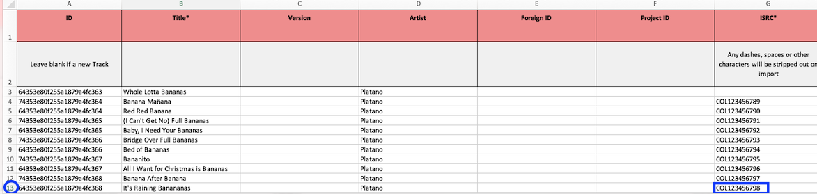 - Locate Entry ID: You would first need to find the Track ISRC in row 13 of the first (overview) tab.
